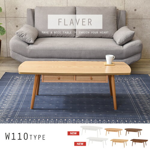 引き出し付きテーブル【FLAVER】フレヴァー[オーバル・スクエア]幅110cm (センターテーブル ローテーブル おしゃれ 北欧 収納 引出 ブラウン ナチュラル 楕円形 長方形)