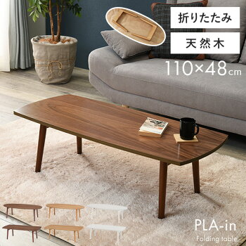 折りたたみテーブル【PLAIN】プレイン[オーバル・スクエア]幅110cm (センターテーブル ローテーブル おしゃれ 北欧 折れ脚 収納 ブラウン ナチュラル 楕円形 長方形 在宅ワーク テレワーク 在宅勤務 ステイホーム STAY HOME)