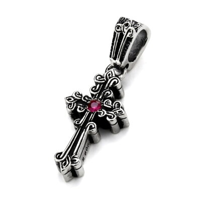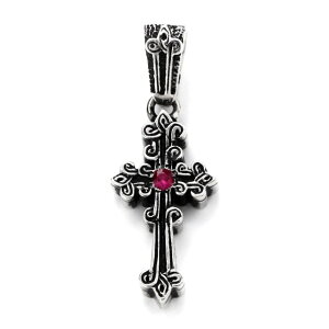 レザーズアンドトレジャーズ【LEATHERS AND TREASURES】ナローケルティック クロス ペンダント w/ ルビー