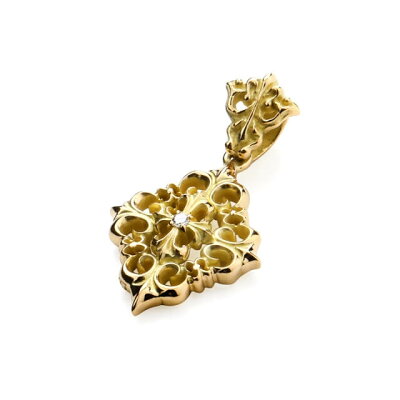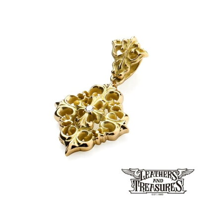 レザーズアンドトレジャーズ【LEATHERS AND TREASURES】K18 スモールフォーフレアデリーペンダント w/ストーンクロス w/ダイヤモンド